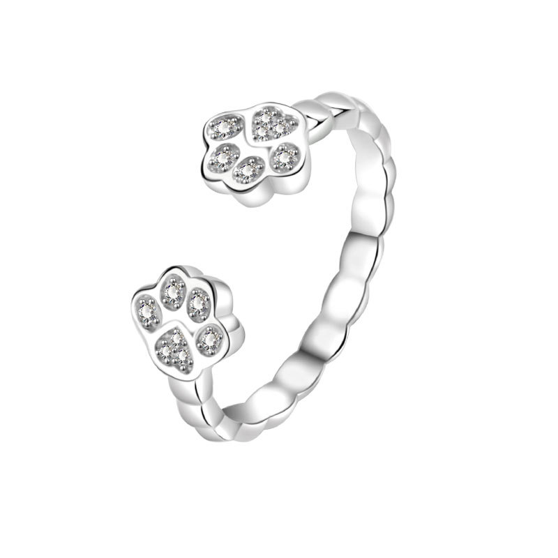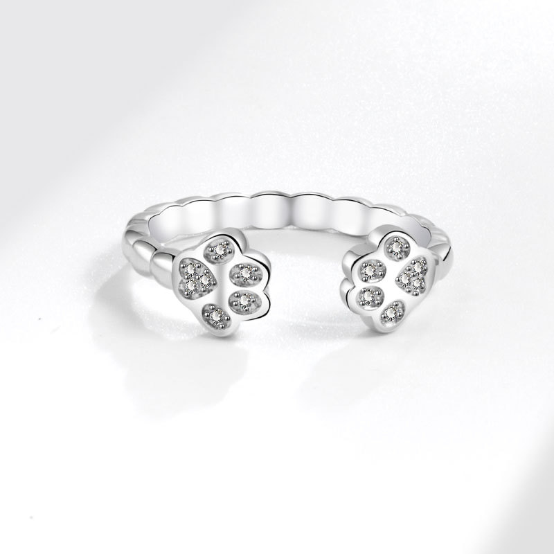 Discover the charm of our Open-end Cat Cute Animal Footprints Ring, a delightful piece designed for the feline lover in your life. This stunning ring is crafted from durable copper and is treated with an elegant electroplating process, giving it a beautiful white gold finish that sparkles with every movement.